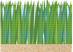 Les brins d’herbe sont verticaux et non horizontaux, le granulé n’est pas comprimé et colmate complètement les brins d’herbe sur toute leur longueur